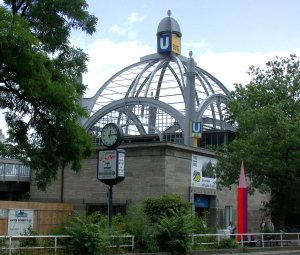 Der U-Bahn–Knotenpunkt hat kürzlich wieder eine Kuppel erhalten. Sie ist weder leicht noch luftig, nur Silhouette. Die wilhelminische Kuppel ist hin wie das